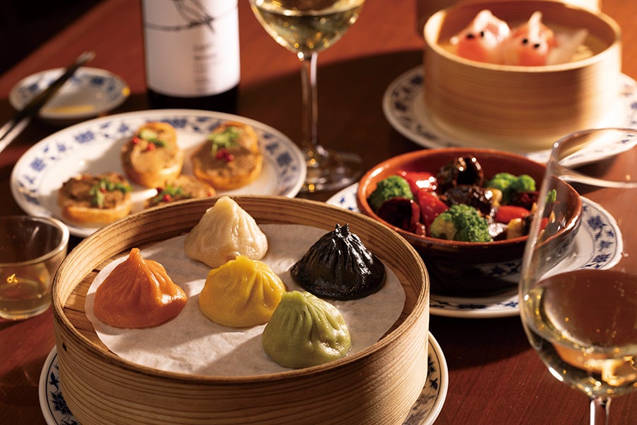 中国の風水思想に基づく、 五つの神を表す小籠包で運気もアップ!ローズホテル横浜より徒歩1分、「重慶茶樓 中華街本店」限定でご提供中の「五神小籠包」は、白:小籠包(白虎)、青:葱小籠包(青龍)、黄:海老小籠包 (麒麟)、赤:辣小籠包(朱雀)、黒:黒トリュフ小籠包(玄武)の5色でご用意しております。