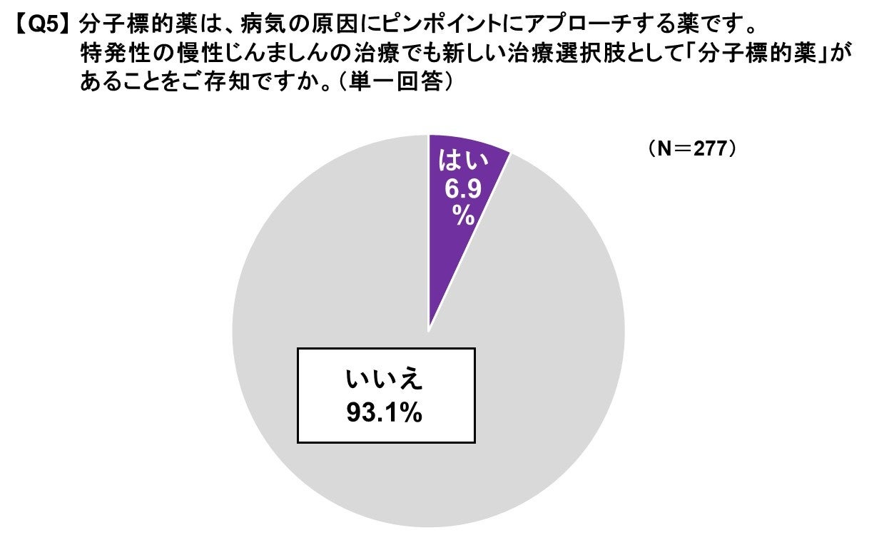 5.9割超の患者さんが慢性特発性じんましんの治療に「分子標的薬」という新しい治療選択肢があることを知らない