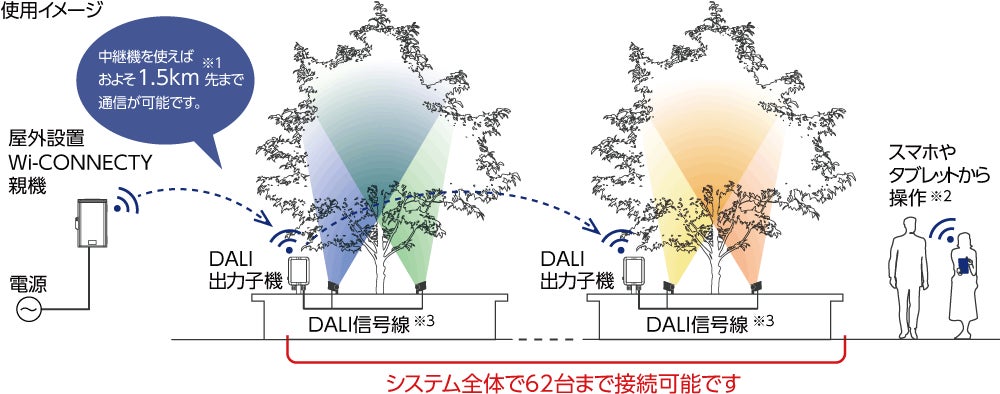 ※3 子機から器具までのDALIの配線長は最大250mです。