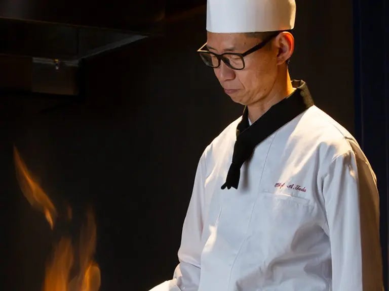 日本料理の伝統を重んじながらも大胆で鋭い感性を生かし、繊細で緻密な技で生み出す新しい料理を追求し続けている。
