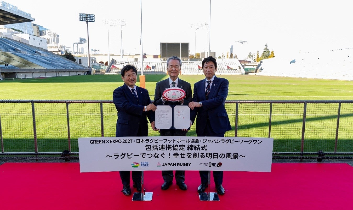 GREEN×EXPO協会(正式名称:公益社団法人2027年国際園芸博覧会協会、会長: 筒井義信、所在地:横浜市中区)は、2025年11月28日(金)に秩父宮ラグビー場にて、公益財団法人日本ラグビーフットボール協会(会長:土田雅人、東京都港区)および一般社団法人ジャパンラグビーリーグワン(理事長:玉塚元一、東京都港区)と共に持続可能な未来の社会づくりを目指す包括連携協定を締結しました。