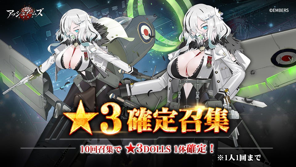 「★3 確定召集」では、10回の召集を行い、そのうち★3 DOLLSが1体以上確定で出現します。