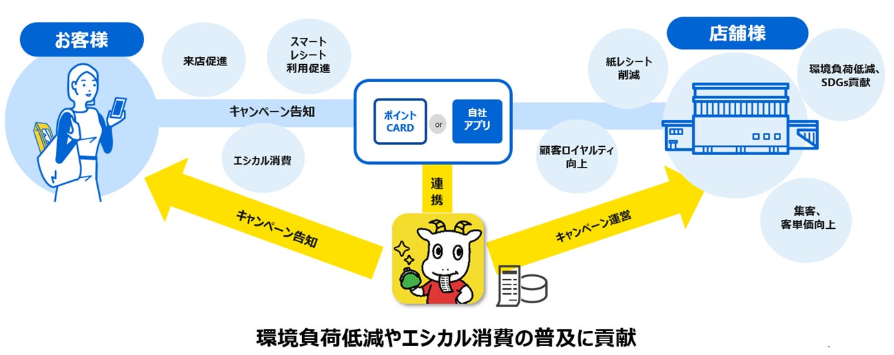 本キャンペーンは、2024年2月14日から4月15日までの期間、キャンペーンの趣旨に賛同いただいた全国の56社の小売企業(屋号数:85)と合同で開催するキャンペーンで、対象店舗で「スマートレシート®」を利用することでエコやエシカルに関連した賞品などが当たる抽選に応募できます。