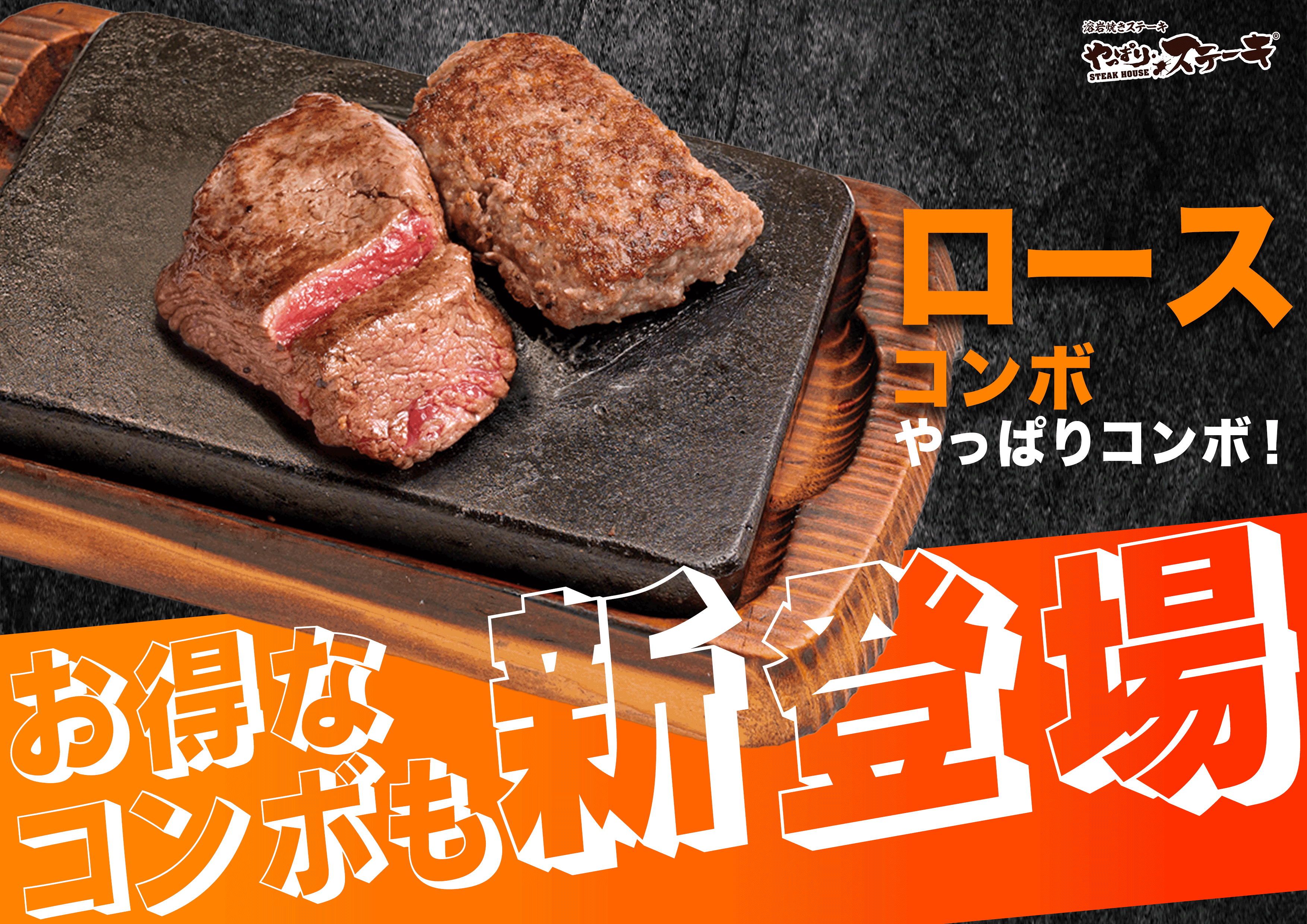 ロースステーキとやっぱりバーグのコンボ「ロースコンボ」が新登場!