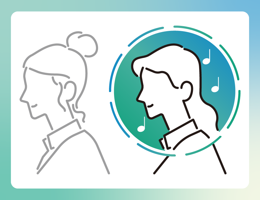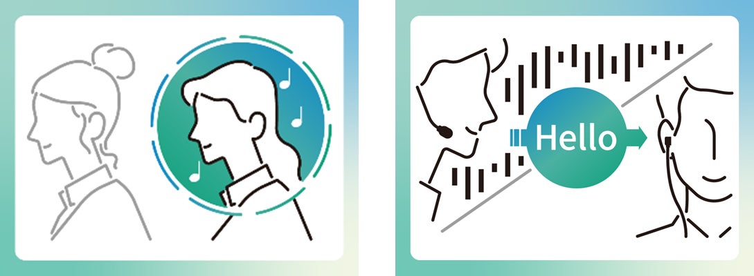 究極の矛盾を両立させる、NTT独自の「PSZ(パーソナライズドサウンドゾーン)」技術※。ある音波(正相)に対し180 度位相を反転させた波形(逆位相)を重ねると音が消える原理を応用。独自のハードウェア設計により耳元の一定エリアに音がとどまるため、耳をふさがなくても周囲への音漏れを抑えます。