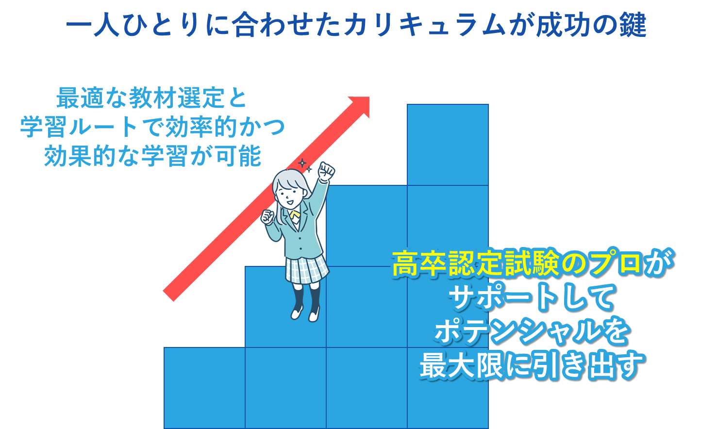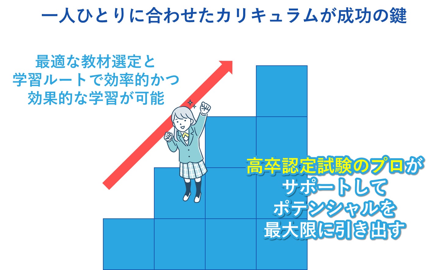 現在のレベルから必要な学習内容を明示し、高卒認定試験合格への確実な道筋を指南!効率的なオーダーメイドの学習プランで成功への道を切り開く!