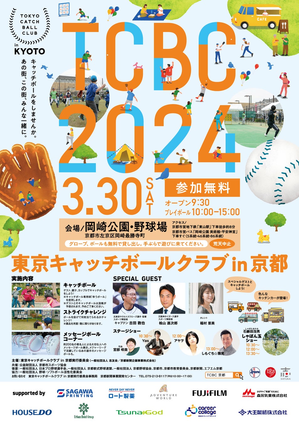 古田敦也さん、桧山進次郎さん、稲村亜美さんを迎え、京都・岡崎で「TCBC2024 東京キャッチボールクラブin京都」3月30日開催 ~キャッチボールをしませんか。あの街、この街、みんな一緒に~