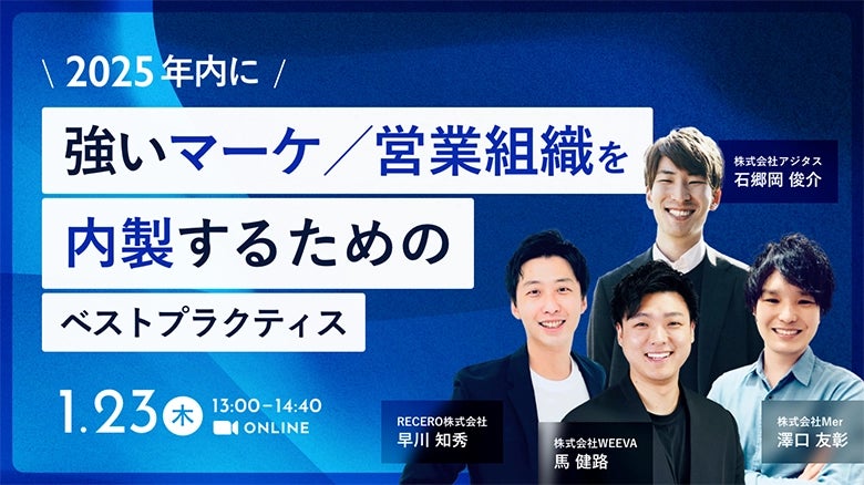 BtoB SaaSのインサイドセールス支援事業『セルメイト』を展開するRECERO株式会社は、株式会社アジタス、株式会社WEEVA、株式会社Merの4社で、『2025年内に強いマーケ・営業組織を内製するベストプラクティス』というテーマの無料のオンラインセミナーを開催致します。