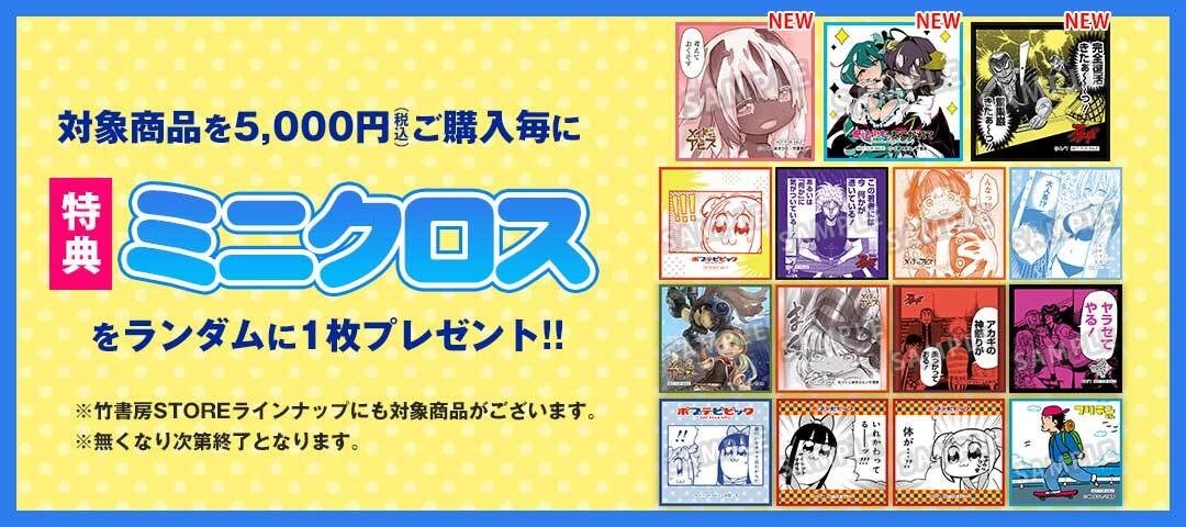 2024年2/4までの期間に「竹書房STORE」公式アカウント@take_s_storeをフォロー&公式ポストをリポストして頂いた方の中から、抽選で毎週1名様に公式グッズをランダムでプレゼント!
