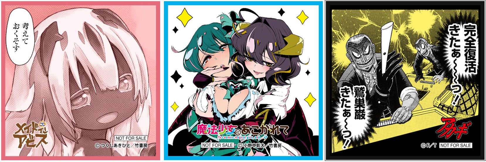アニメ放送中の「魔法少女にあこがれて」や、「アカギ」「SOGA」「メイドインアビス」などの竹書房の人気作品オリジナルグッズが勢揃い!