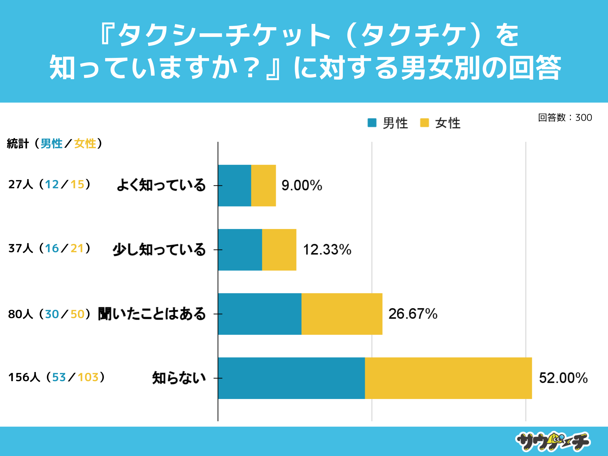 10〜30代男女の52%が、タクシーチケットを知らないと回答【タクシーチケット(タクチケ)についてのアンケート】