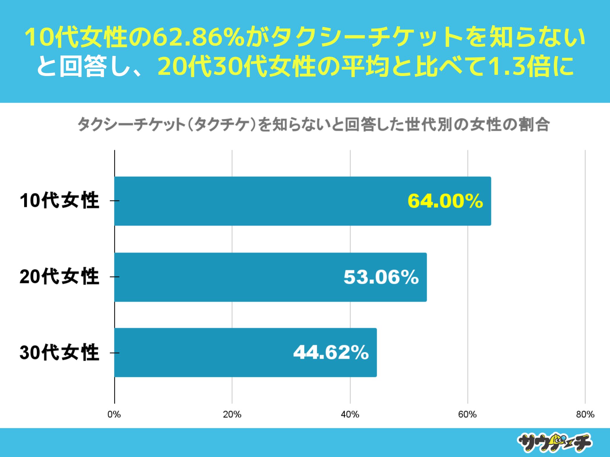 【10代女性の62.86%がタクシーチケット(タクチケ)を知らないと回答し、20代30代女性の平均と比べて1.3倍に】