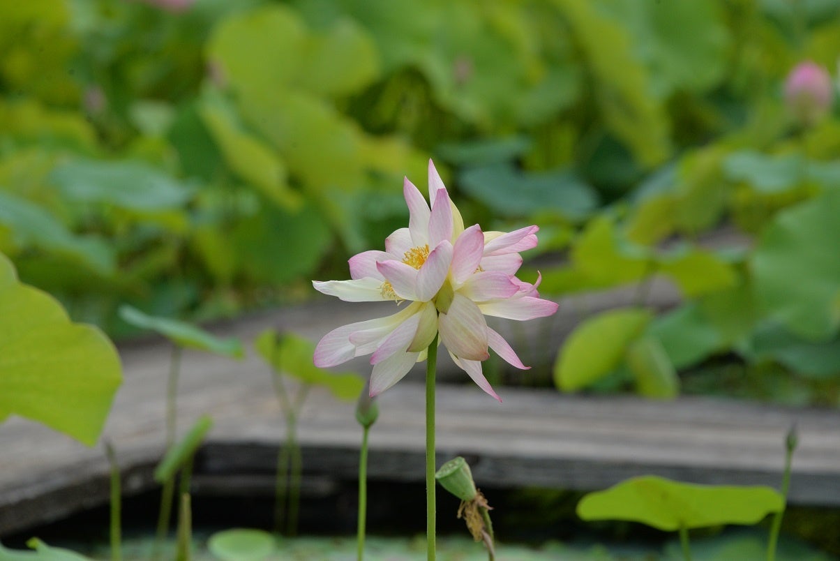 双頭蓮は一本の茎から二つの花をつける大変珍しい蓮ですが、昨年も確認されており、蓮の花苑では