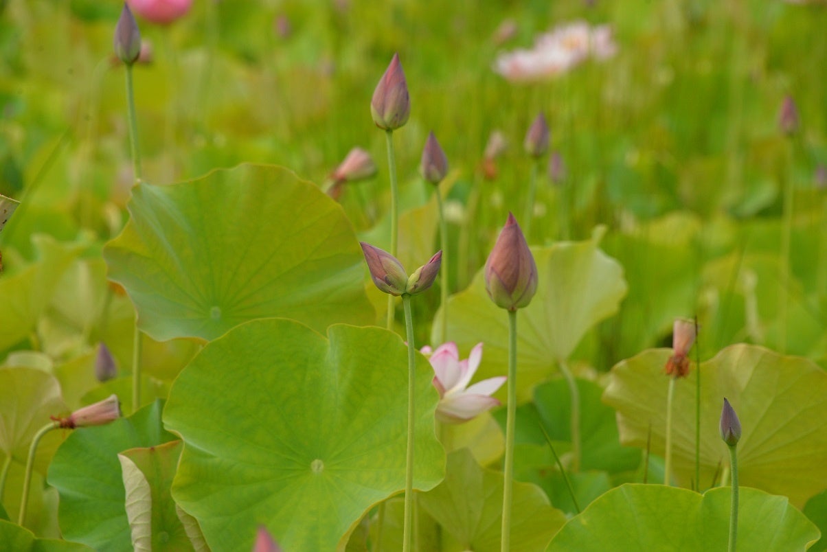 『夢前 蓮の花苑』にて赤蓮の双頭蓮のつぼみと美中紅の双頭蓮の開花が確認‼