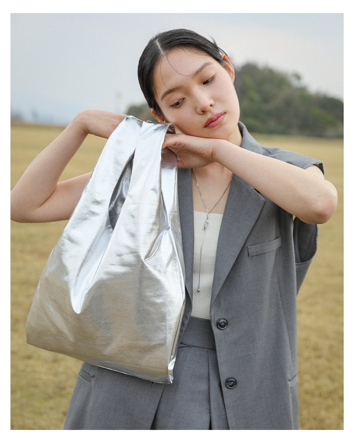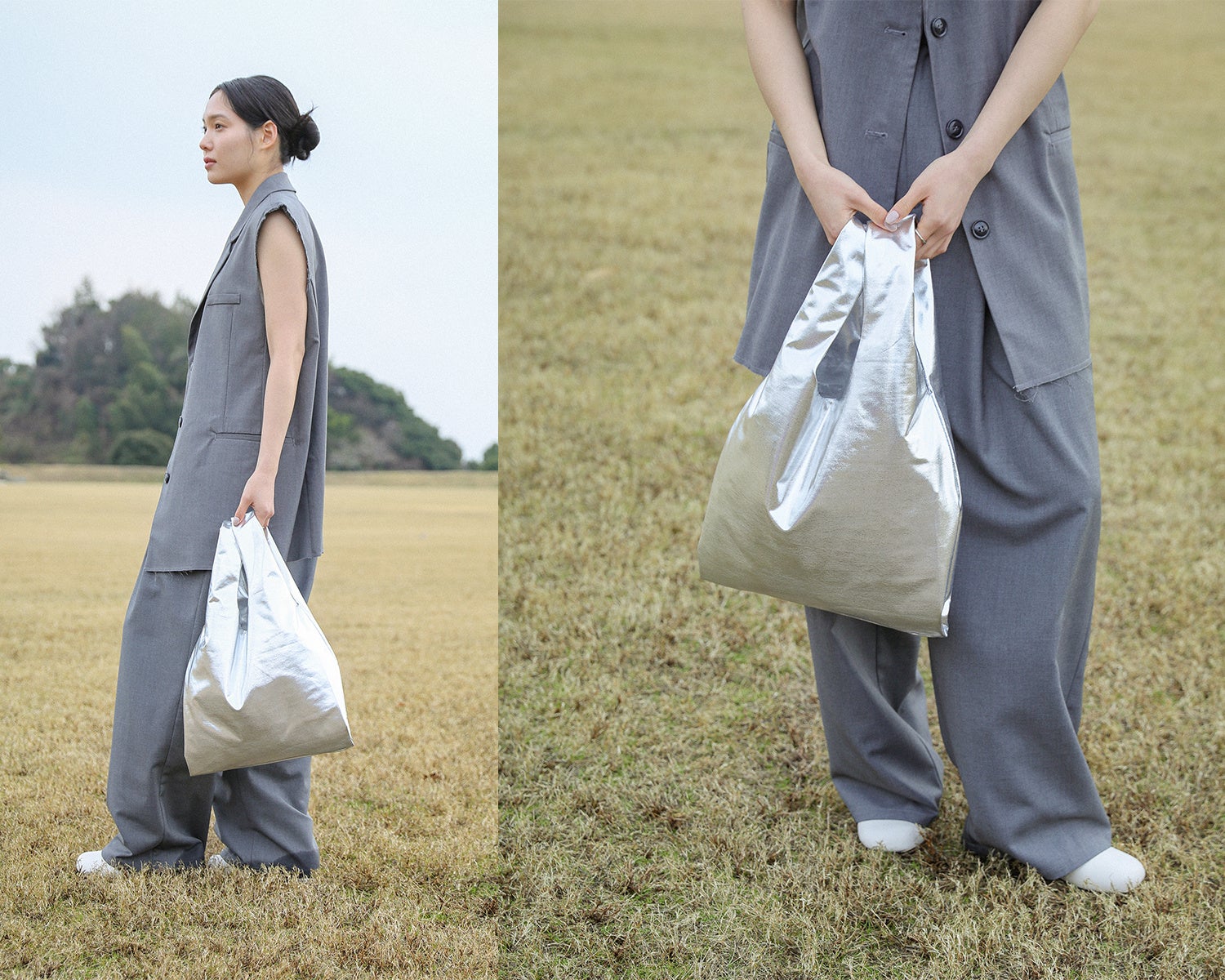 この春トレンドのメタリック、デイリー使いはもちろんエコバッグとしても使用して頂けます。