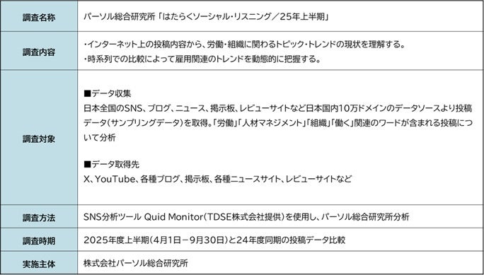 株式会社パーソル総合研究所(本社:東京都江東区、代表取締役社長:岩田 亮)は、生活者の生の声をもとに「はたらく」に関するトピックスのトレンドを可視化する「はたらくソーシャル・リスニング(2025年度上半期)」を発表いたします。(分析対象期間:2025年4月~2025年9月)