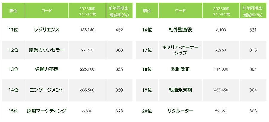 ■2025年度上半期の投稿増加率上位ワード (上位11-20位)