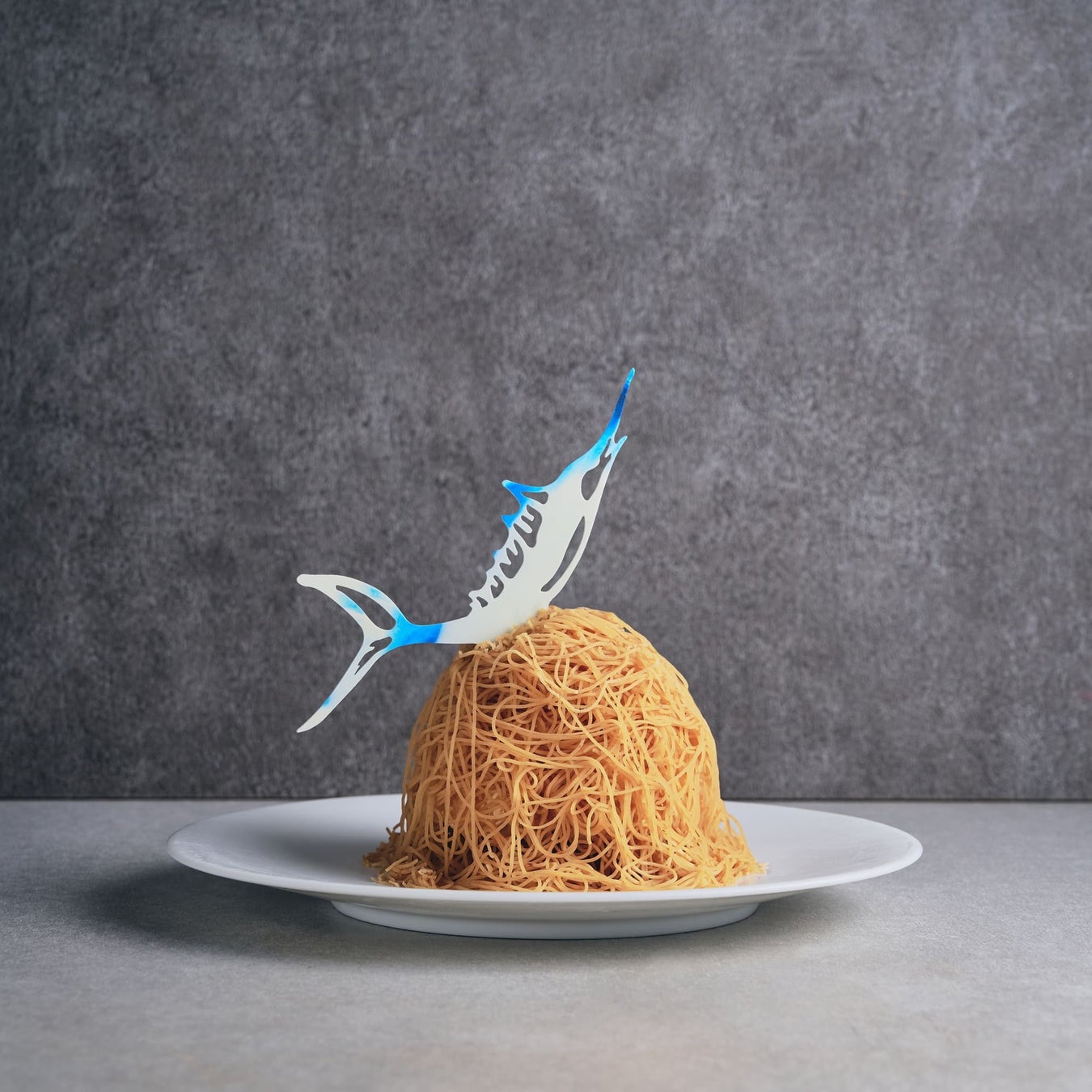 まるで水の中から自由に飛び立つ魚の形を模したショコラが夏の青空や海を連想させ、