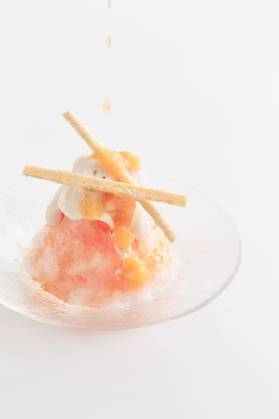マダガスカル産のバニラと完熟の白桃を贅沢につかったかき氷。