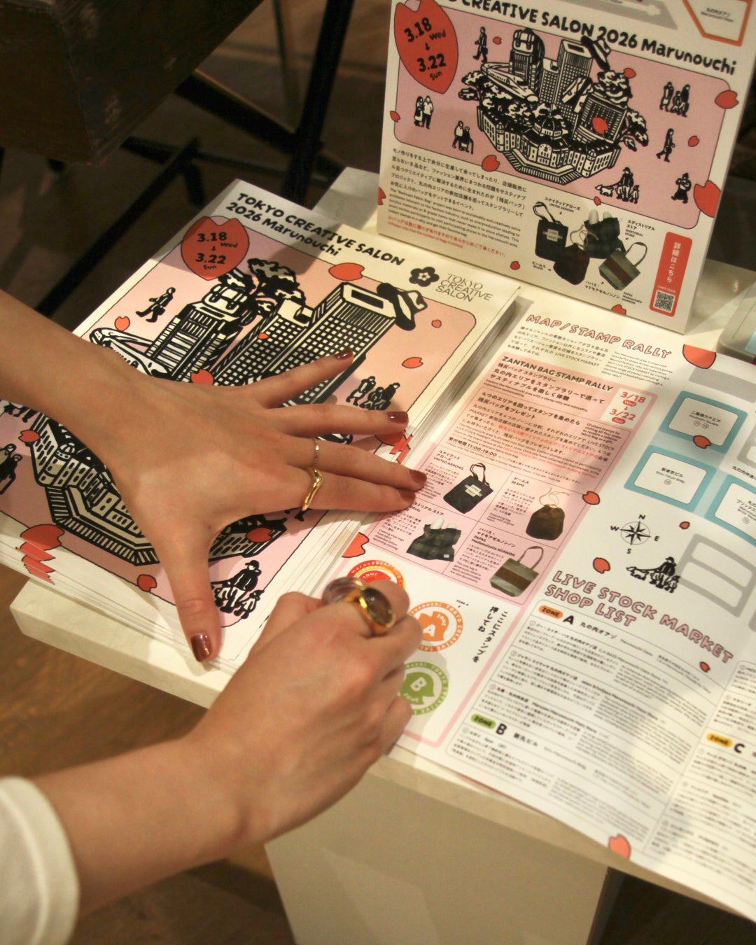 丸の内エリアでは、2026年3月18日~22日の期間、東京駅に隣接するビジネス街の特性を活かし、気軽に参加できる体験型コンテンツを実施しました。新丸ビルをメイン会場に、エリア全体を舞台とした回遊型イベントを展開しました。また、デッドストックに新たな価値を見出す「LIVE STOCK MARKET」や、街を巡って楽しむ「残反バッグ STAMP RALLY」を実施。スタイリスト小沢宏氏のディレクションのもと、各店舗が経年在庫を再編集・提案するとともに、端切れ布を活用したバッグが入手できる企画などを通じて、サステナブルな取り組みを広く紹介しました。働く街・丸の内からサステナブルなクリエイションのあり方を発信するとともに、ファッションにおける循環型の価値創出やアップサイクルの可能性を提示しました。