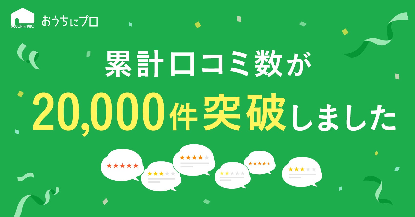 【おうちにプロ】累計口コミ数が2万件を突破しました