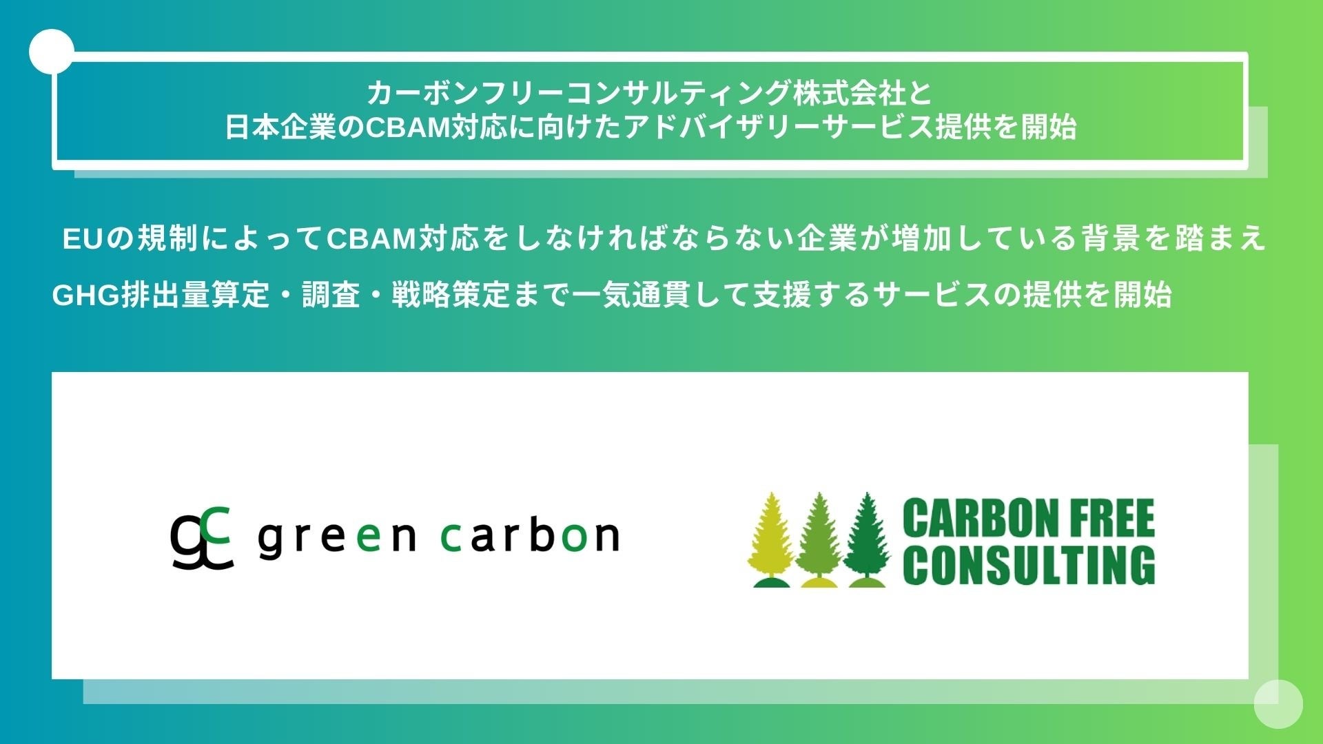 【EUへの輸出製品・サービスを展開している企業必見】 Green Carbon株式会社は、カーボンフリーコンサルティング株式会社と 日本企業のCBAM対応に向けたアドバイザリーサービスを開始