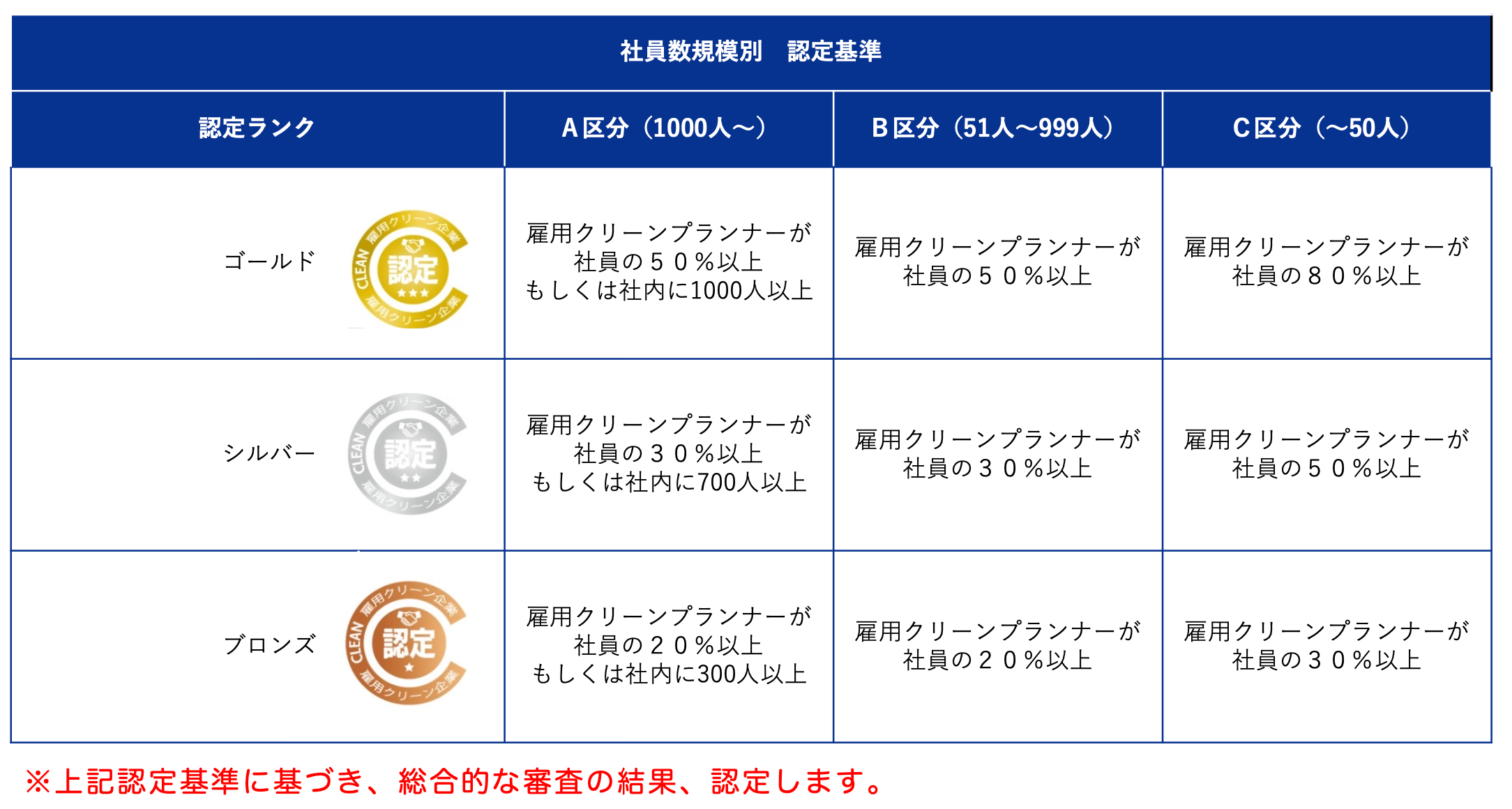 雇用クリーンプランナーを利用して、客観的な基準でクライアント企業の「雇用環境のクリーンさ」を測り、そのレベルを認定する事業です。ハラスメントや労働トラブルの予防、対策についての学習を20時間かけて行う雇用クリーンプランナー資格講座を終了した人数割合で企業認定ランクは変動するため、上位ランクほど社員の雇用環境意識が高いということを意味します。すなわち社員が働きやすいことの証明であり、企業としてはそのことを「雇用クリーン企業認定マーク」によって外部にアピールすることができます。