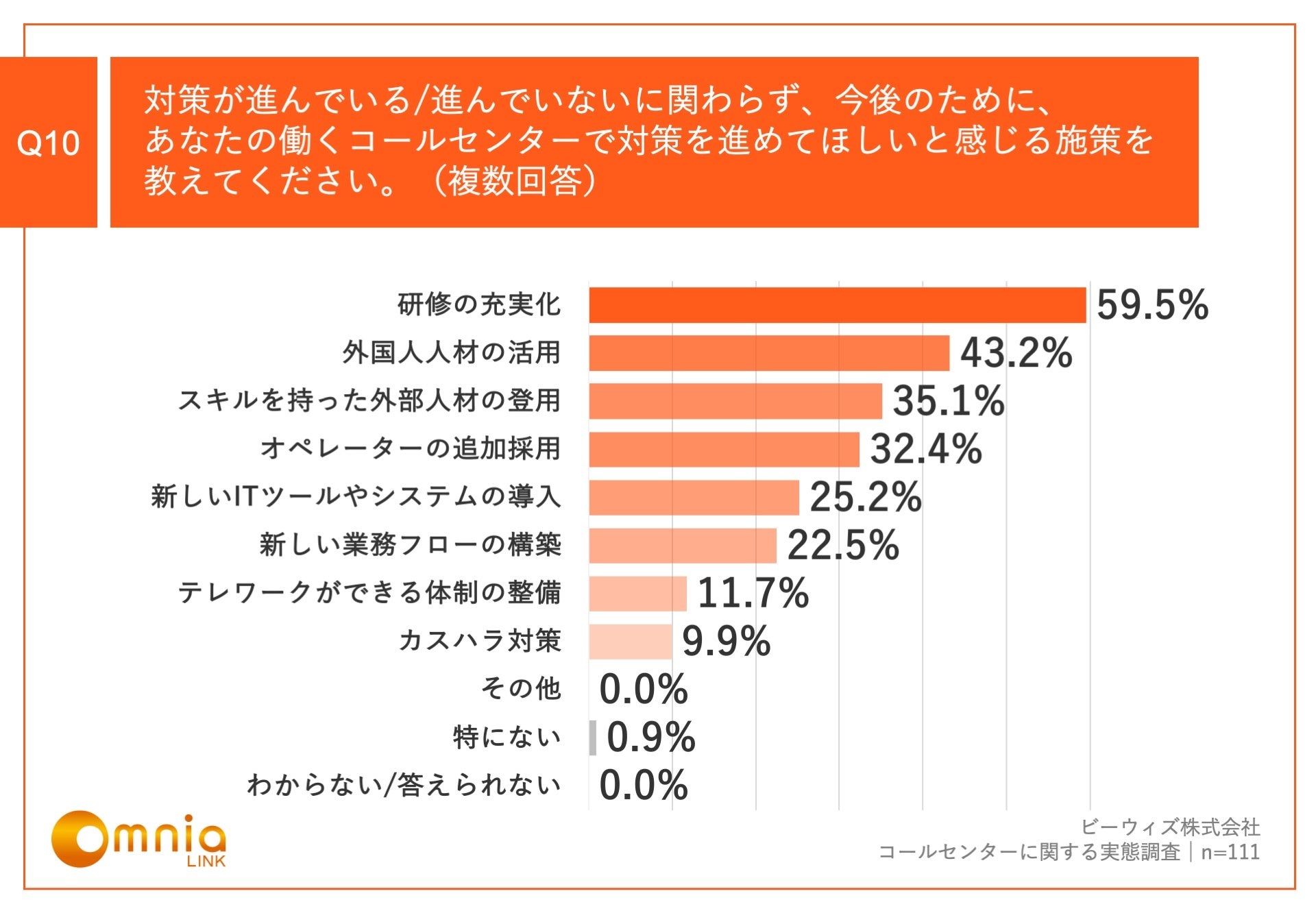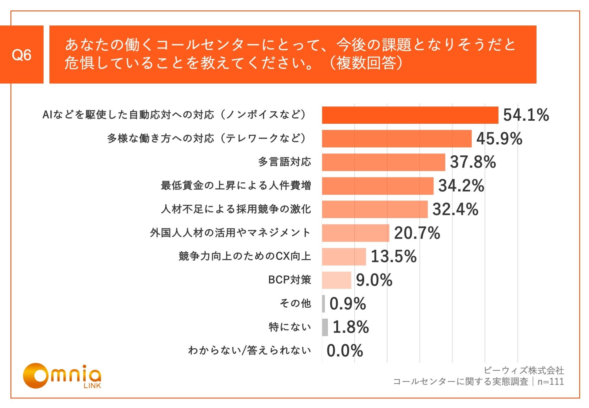 ビーウィズ株式会社(本社:東京都新宿区、代表取締役社長:森本 宏一、東証プライム市場:証券コード9216、以下ビーウィズ)は、システムやツールを導入しているコールセンターに3年以上勤務する管理者(SV以上)111名を対象に、コールセンターに関する実態調査を実施しましたので、お知らせいたします。