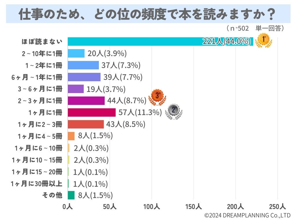 仕事のために読書しますか?調査した結果、最も多いのは「ほぼ読まない」という回答でした。