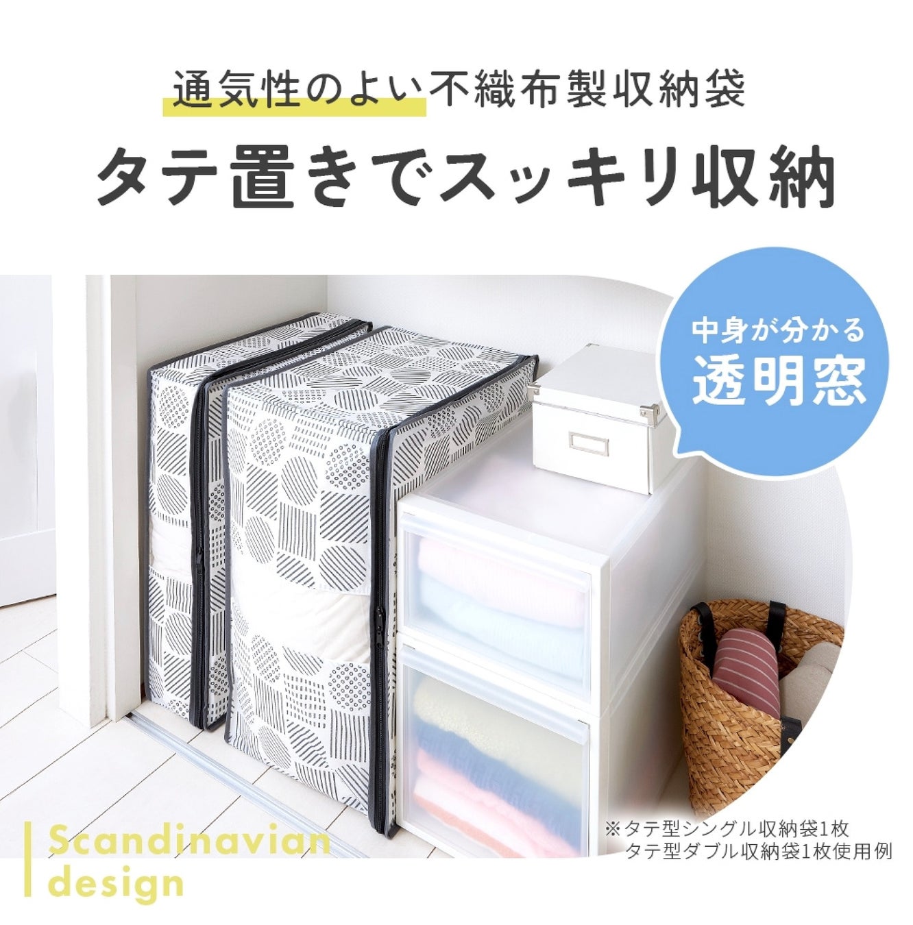 シリーズ累計36万個突破!北欧柄に新作登場!布団も着物も、すき間収納で賢く整頓「羽毛布団収納袋 北欧柄 タテ型シングル/ダブル」「着物収納袋 北欧柄」発売中!