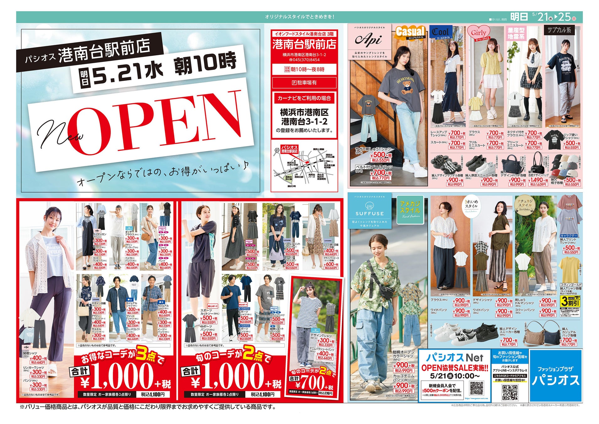 ファッションプラザ【パシオス】が5/21(水)「イオンフードスタイル港南台店」に新店をオープン