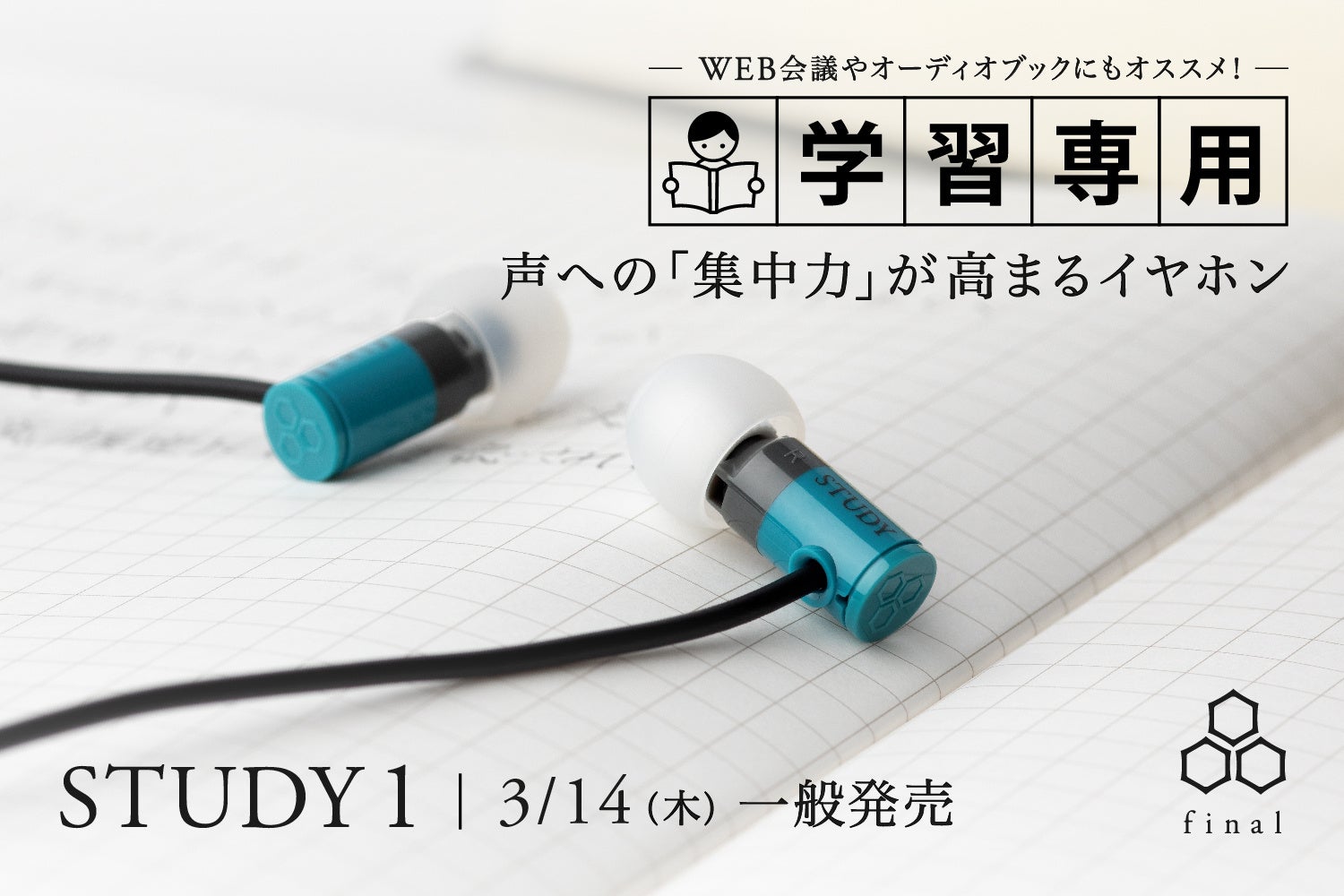 声への「集中力」が高まる学習専用イヤホン「STUDY 1」2024年3月14日(木)一般発売開始! 英会話などリスニングのほか、WEB会議やオーディオブックにもオススメ!