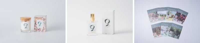 ブランドを代表する「9KOS」は、九州各地の特産素材を活かしたアップサイクルフレグランスシリーズです。太宰府市の梅を使った「Ume & Cedarwood」、八女市の茶葉を生かした「Yame Green Tea」など、地域の魅力を香りに融合させたフレグランスをご提供します。そのほか、ルームミストやバスパウダーなどリラックスしたおうち時間を楽しめるグッズをご用意いたします。