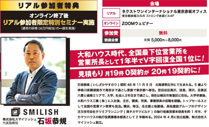 株式会社スマイリッシュ 代表取締役 石坂恭規氏 企業HP:https://www.smilish.net/