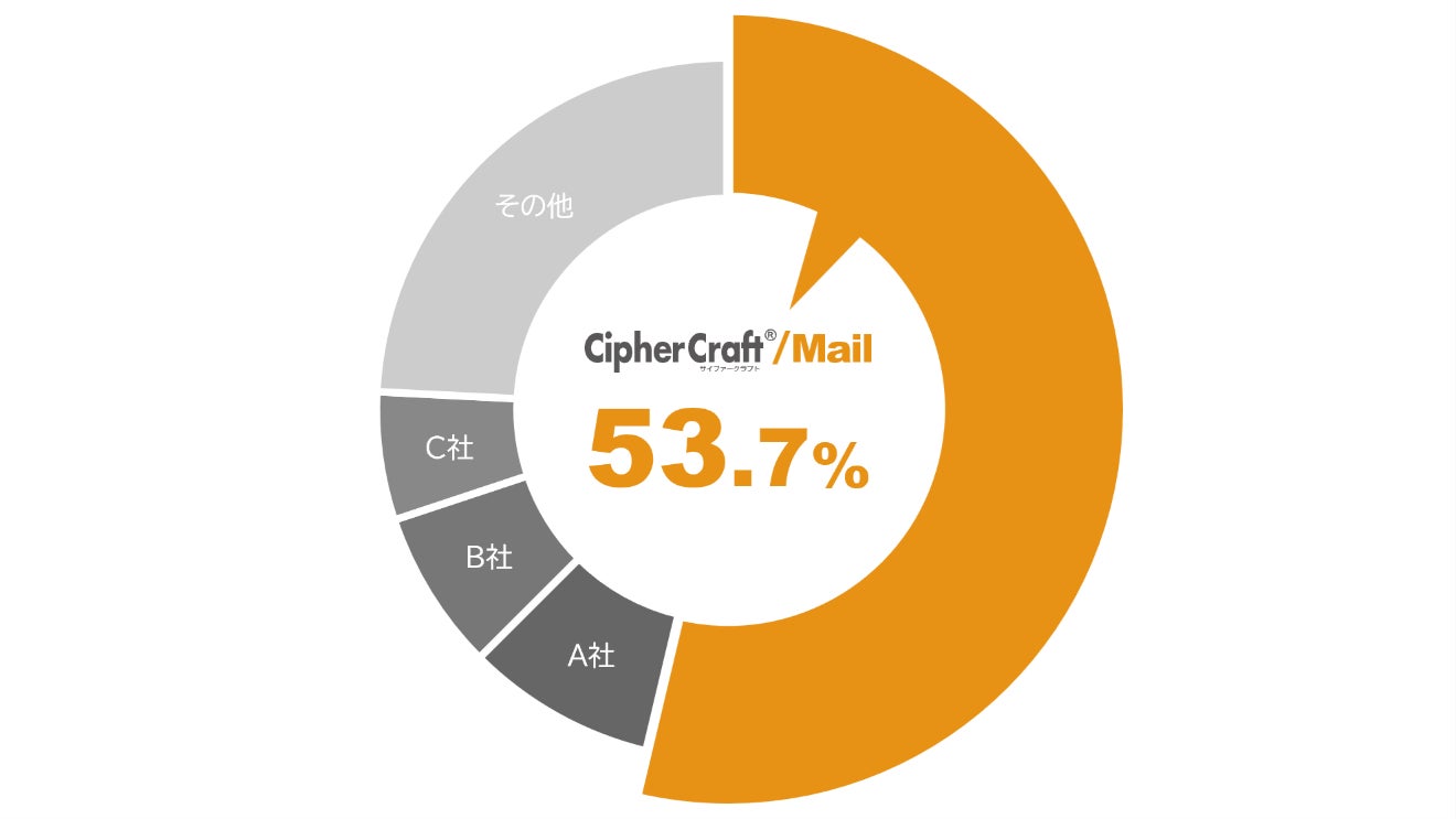 NTTテクノクロス株式会社(本社:東京都港区、代表取締役社長:岡敦子)のメール誤送信対策ソフトウェア「CipherCraft/Mail(サイファークラフトメール)」が、デロイト トーマツ ミック経済研究所株式会社(本社:東京都千代田区丸の内、代表取締役社長:渡邊茂男)の2024年の調査レポート(*1)において、電子メール誤送信防止ツール市場(ソフトウェアパッケージ)で出荷金額の53.7%を占め、シェアNo.1を獲得しました。これにより、2007年度以来17年連続のシェアNo.1を獲得しました。