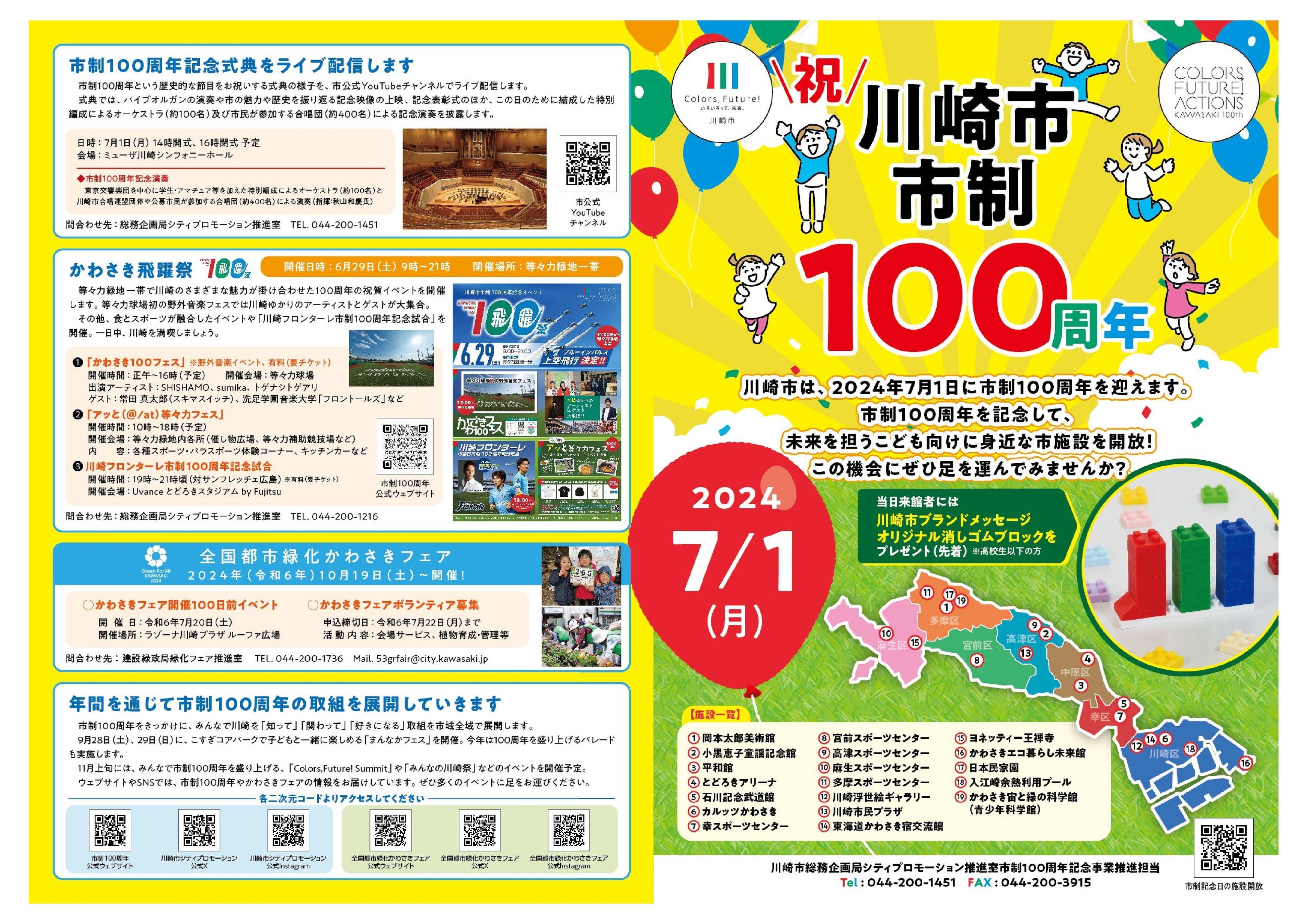 2024年7月1日に、川崎市は市制100周年をむかえます。
