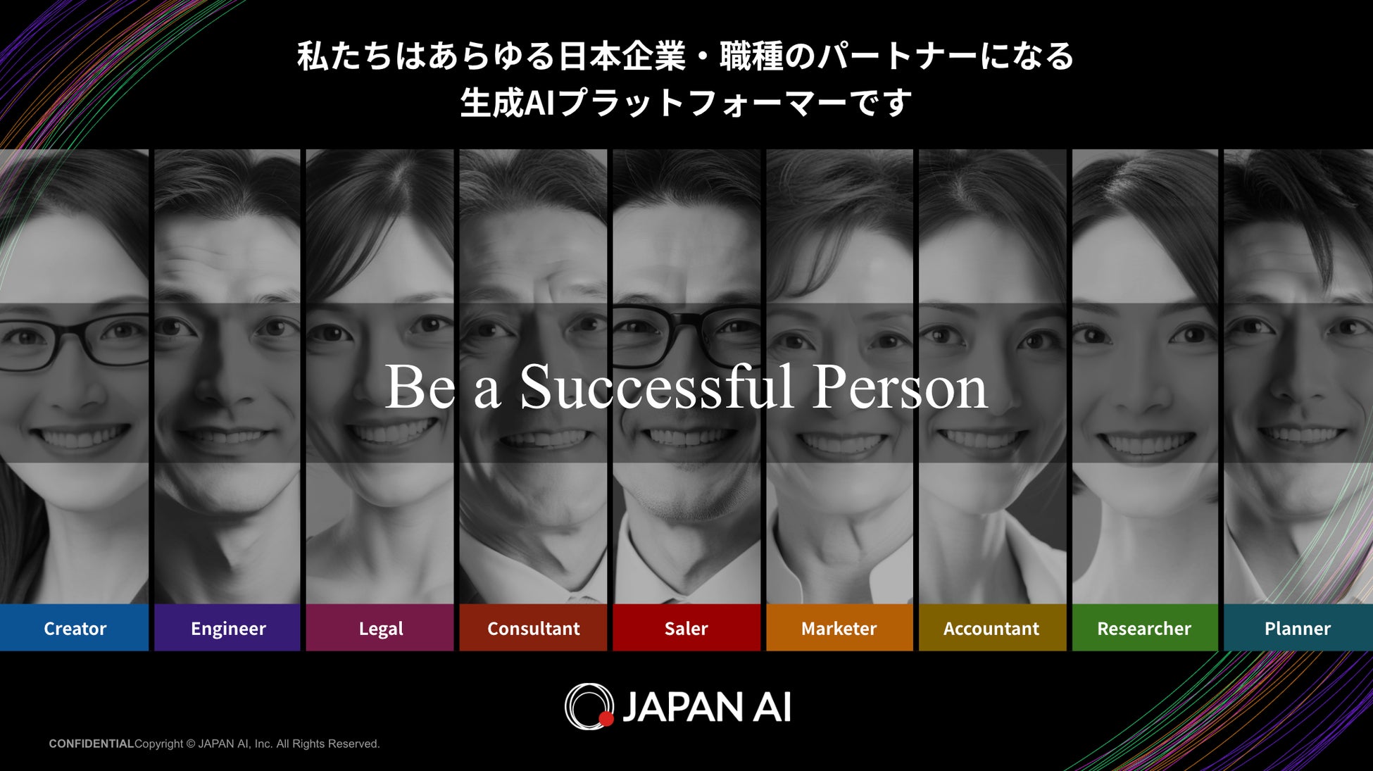 したがって、これまで開発してきた「JAPAN AI CHAT」「JAPAN AI SPEECH」「JAPAN AI SALES&MARKETING」といった各種生成AI機能の開発を強化しつつ、「JAPAN AI AGENT」開発の両輪を回すことにより、『AIで持続可能な未来の社会を創る』ことに邁進して参ります。