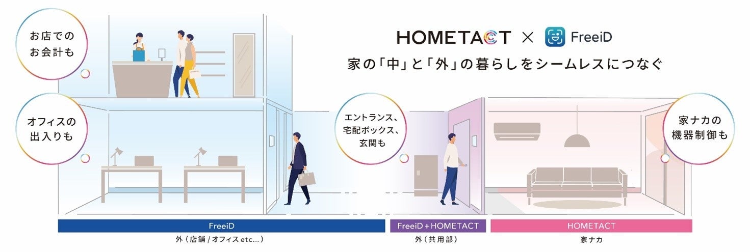 本パッケージの導入により、家の「中」の暮らしを「HOMETACT」で快適にすると同時に、1度登録した顔で様々な顔認証サービスを利用可能にする「FreeiD」で家の「外」の暮らしにおける利便性を向上させ、家の「中」と「外」の暮らしをシームレスにつなぐ世界を実現いたします。また、お客様にとってより導入を検討しやすい特別料金プランもご用意しております。