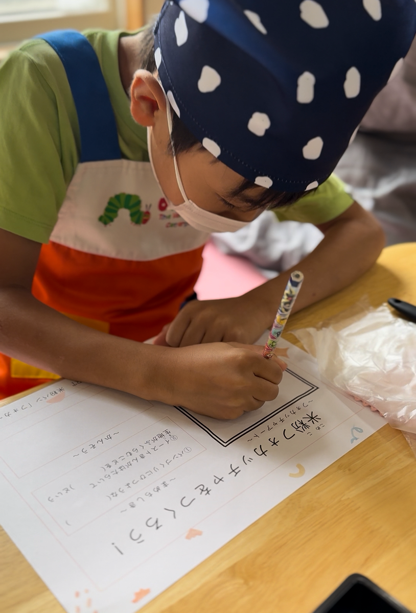 さらに、食材の名前やパン作りの工程を記入するワークシートも配布され、食べ物に対する理解を言葉でも深める内容となっていた。