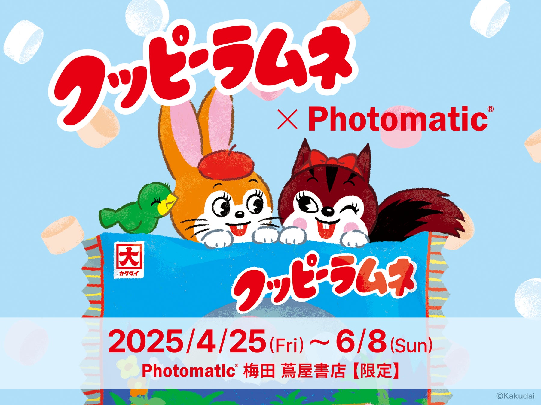 キタムラ・ホールディングス グループのピックハイブ株式会社(本社:東京都新宿区、代表取締役社長兼COO:大迫 由典)は、2025年4月25日(金)から2025年6月8日(日)の間、1963年の発売以来、昭和を代表する駄菓子として男女問わず幅広い世代に愛される「クッピーラムネ」とコラボしたオリジナルフレームをPhotomatic 梅田 蔦屋書店に設置します。子供から大人まで、大人気のクッピーラムネの世界をお楽しみください。