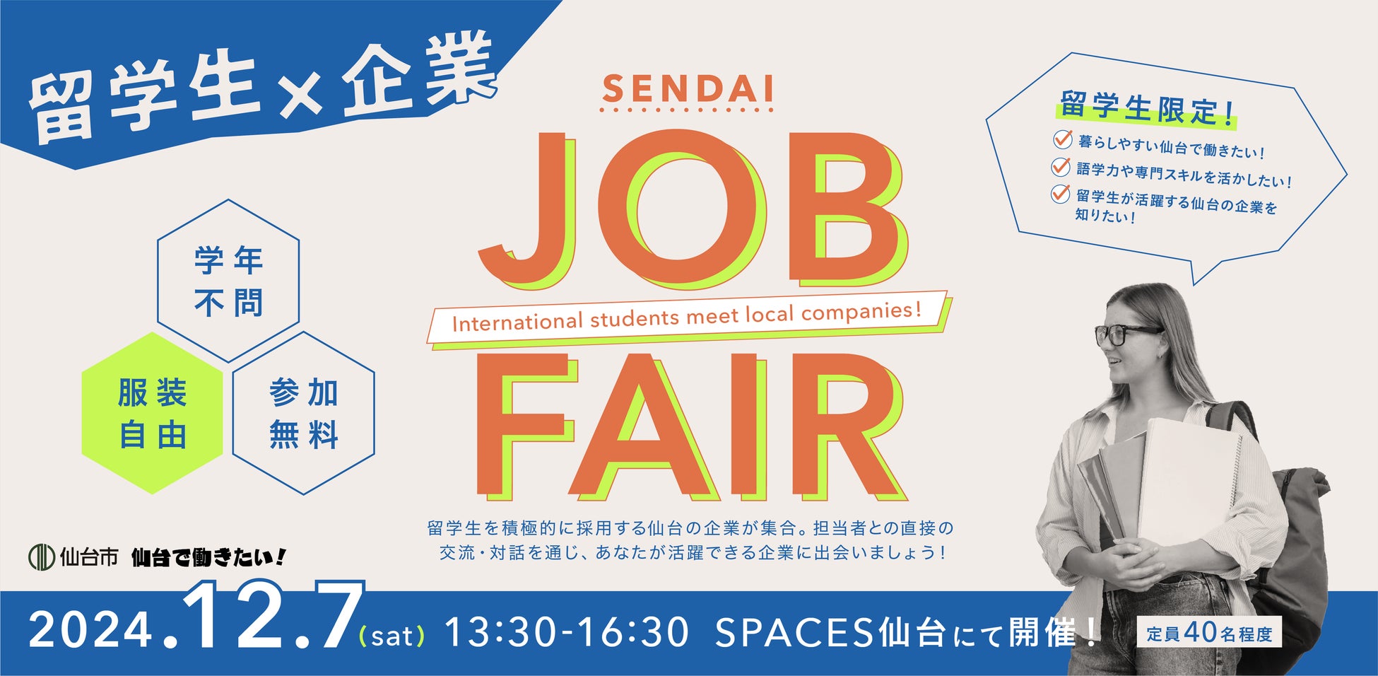 【仙台市初開催!】留学生のためのキャリアマッチングイベント「SENDAI JOB FAIR ~International students meet local companies~」を開催します。