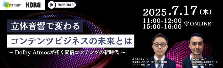 7月17日には、コルグ・Jストリーム2社で、超高音質での立体感・臨場感あるライブ実施に向けたオンラインセミナーを開催いたします。