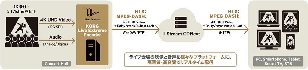 株式会社Jストリーム(東証グロース:4308 代表取締役社長:石松 俊雄、以下Jストリーム)は、CDNサービス「J-Stream CDNext」が、株式会社コルグ(東京都稲城市、以下コルグ)が開発する業界史上最高音質のインターネット動画配信システム「Live Extreme」を利用した、Dolby Atmos対応の大規模ライブ配信に対応開始したことをお知らせいたします。