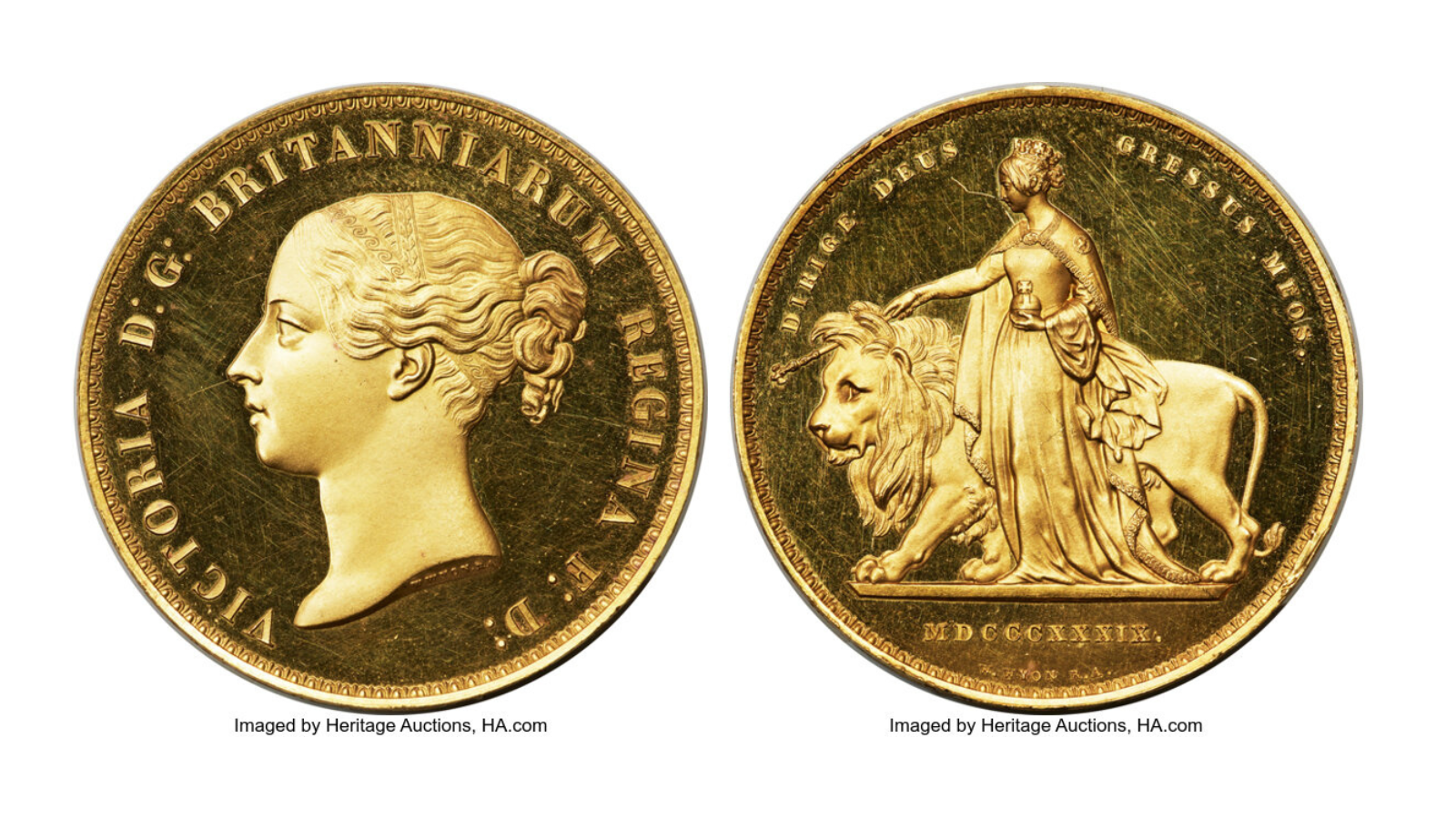 イギリス 1839年 ヴィクトリア女王 ウナ&ライオン 5ポンド金貨
