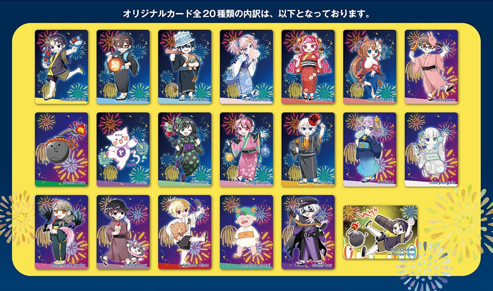 YouTubeで人気のゲーム実況配信グループ『アルティメットジャンボジェット』のトレーディングカード付きウエハースが販売決定!縁日や夏祭りをテーマに描き下ろした限定カードがランダムで1枚ついてきます♩