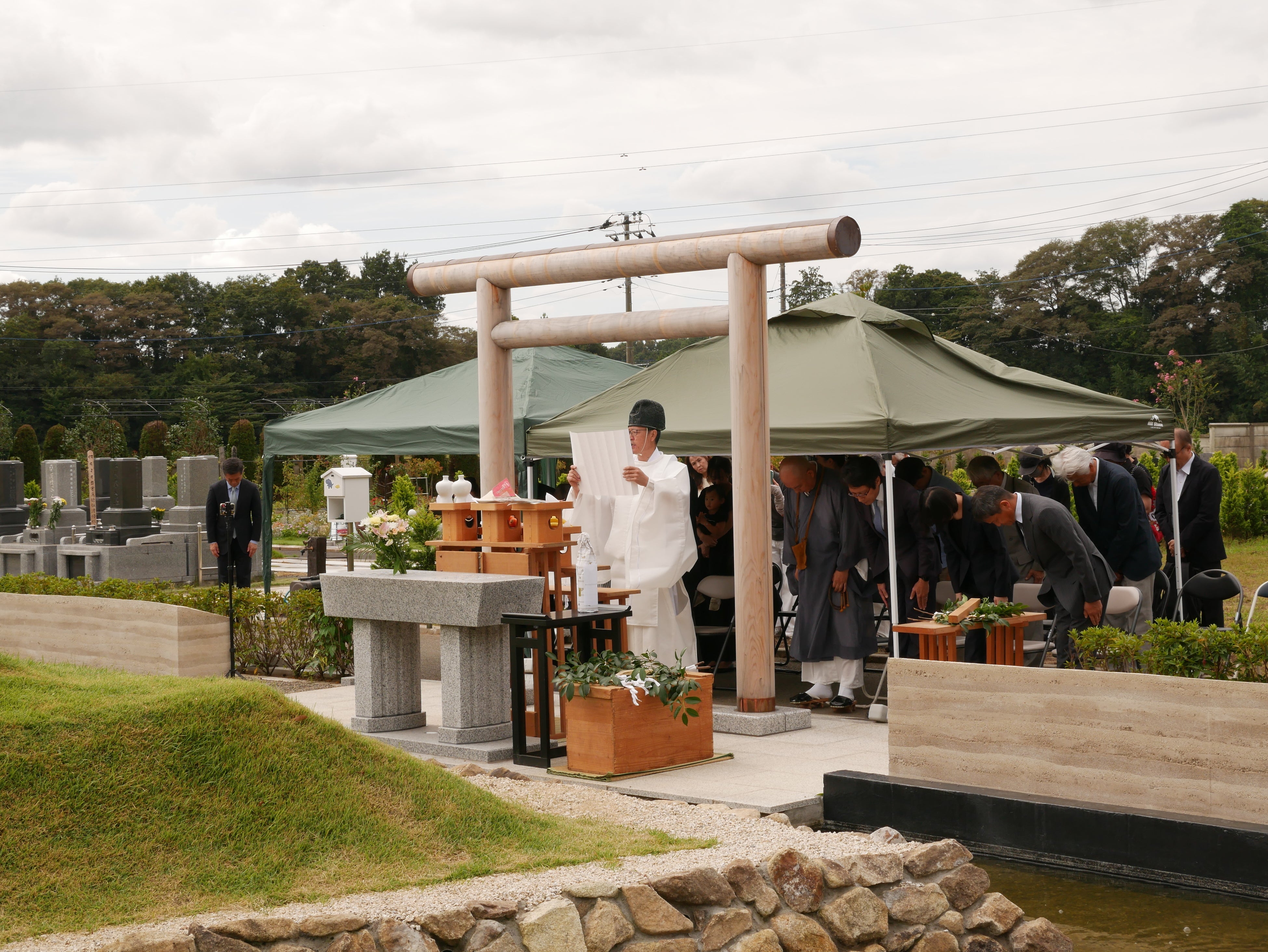 当社では、「古墳墓」という本来神道的な性格を持つ墓所において、神職による祭祀と住職による読経という二つの祈りが重ねられ、日本古来の祈りのかたちである「神仏習合」の祭祀・供養が執り行われることに、大きな意義があると考えています。