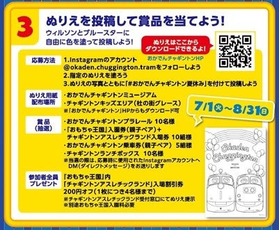 ぬりえはおかでんチャギントンのInstagramアカウント(@okaden.chuggington.tram)で投稿キャンペーンも行っていますので、ぜひ応募してください。