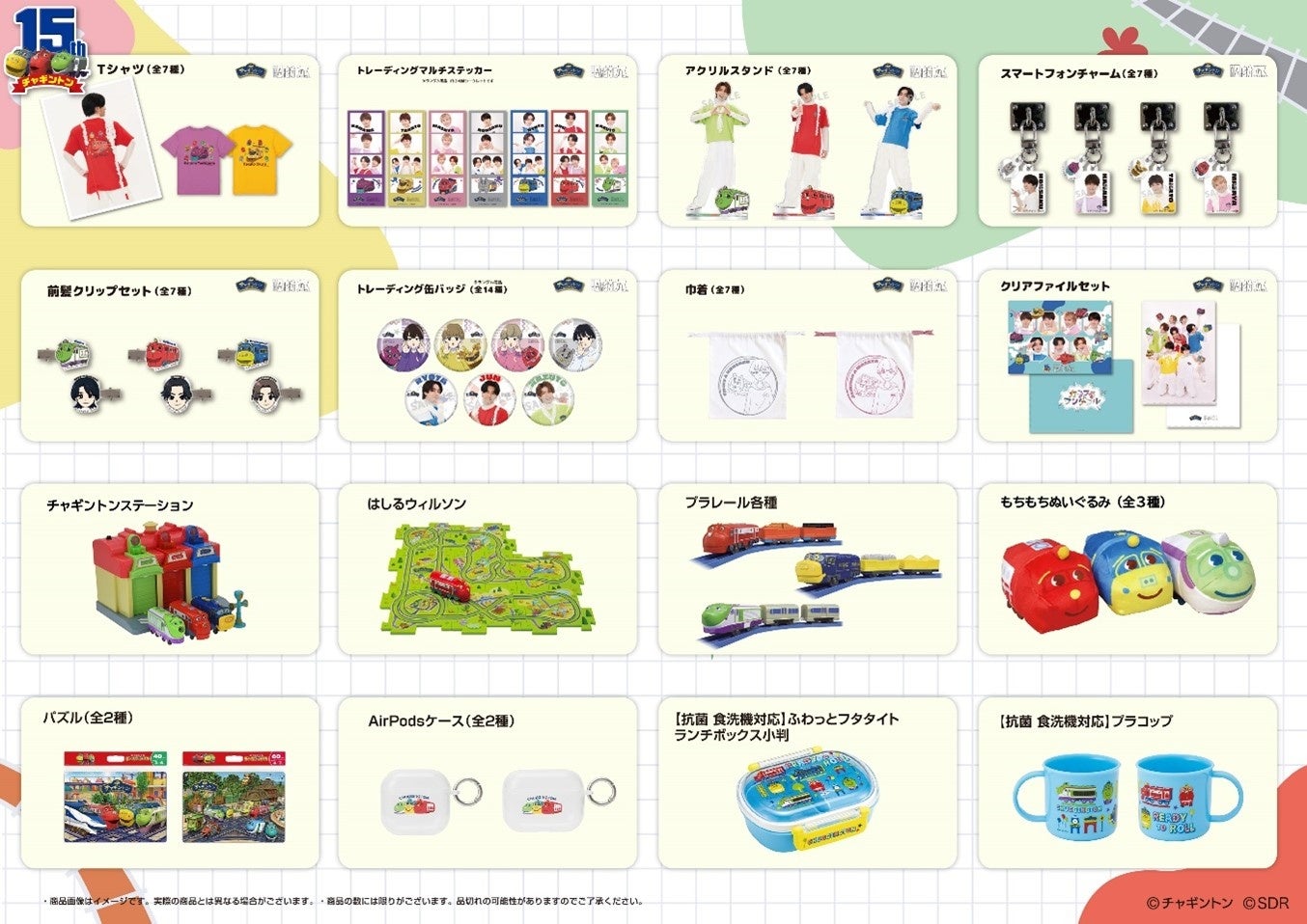 チャギントンプラレールやランチグッズなどチャギントンのグッズとあわせ、15周年コラボグッズも販売!チャギントン15周年アンバサダー 原因は自分にある。のコラボビジュアルタペストリーやサイン入りTシャツも展示します。