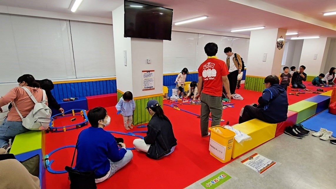 「チャギントンプレイルーム」は、靴をぬいで遊ぶことができるスペース。スペース内にあるモニターでは、チャギントンのお話やダンス動画を楽しめます。また、ぬりえコーナーでは、備え付けの色鉛筆でおかでんチャギントンのぬりえで遊ぶことができます。おかでんチャギントンのInstagramアカウント(@okaden.chuggington.tram)をフォローして、ぬりえを写真と共に投稿すると、おかでんチャギントンプラレールや「おもちゃ王国」入園券(親子ペア)+チャギントンアスレチックランド入場券など豪華賞品が当たるキャンペーンも実施。また、プレイルームは7月26日(土)、27日(日)、8月10日(日)、11日(月・祝)におもちゃで思いっきり遊べるスペースに変身。制限時間内であれば、好きなだけチャギントンのおもちゃで遊ぶことができます(有料)。
