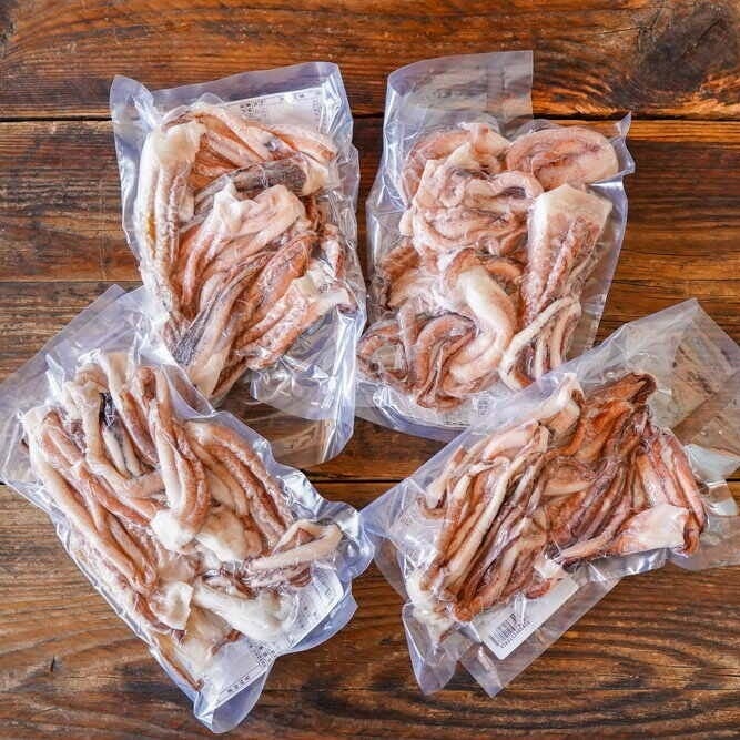 一夜干しにすることで、イカの旨みがギュッと凝縮され、噛むほどにジューシーな味わいが広がります。200gずつの小分けパックで使いやすく、必要な分だけ取り出せるのも嬉しいポイントです。
